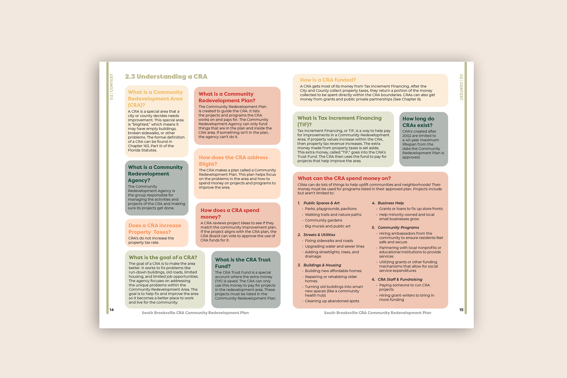 I worked on various projects creating print materials, signage, and report layouts. Some of these projects include Watkinsville's Strategic Development Plan, Indian River Safe Streets for All Action Plan, Melbourne Line Street Cemetery, South Brooksville's Community Redevelopment Plan, Osceola County Commercial Land Use Summary Report, and Green Cove Springs Public Art Concepts. For Indian River & South Brooksville I also created the guidelines for the project branding. Projects by Inspire Placemaking Collective.