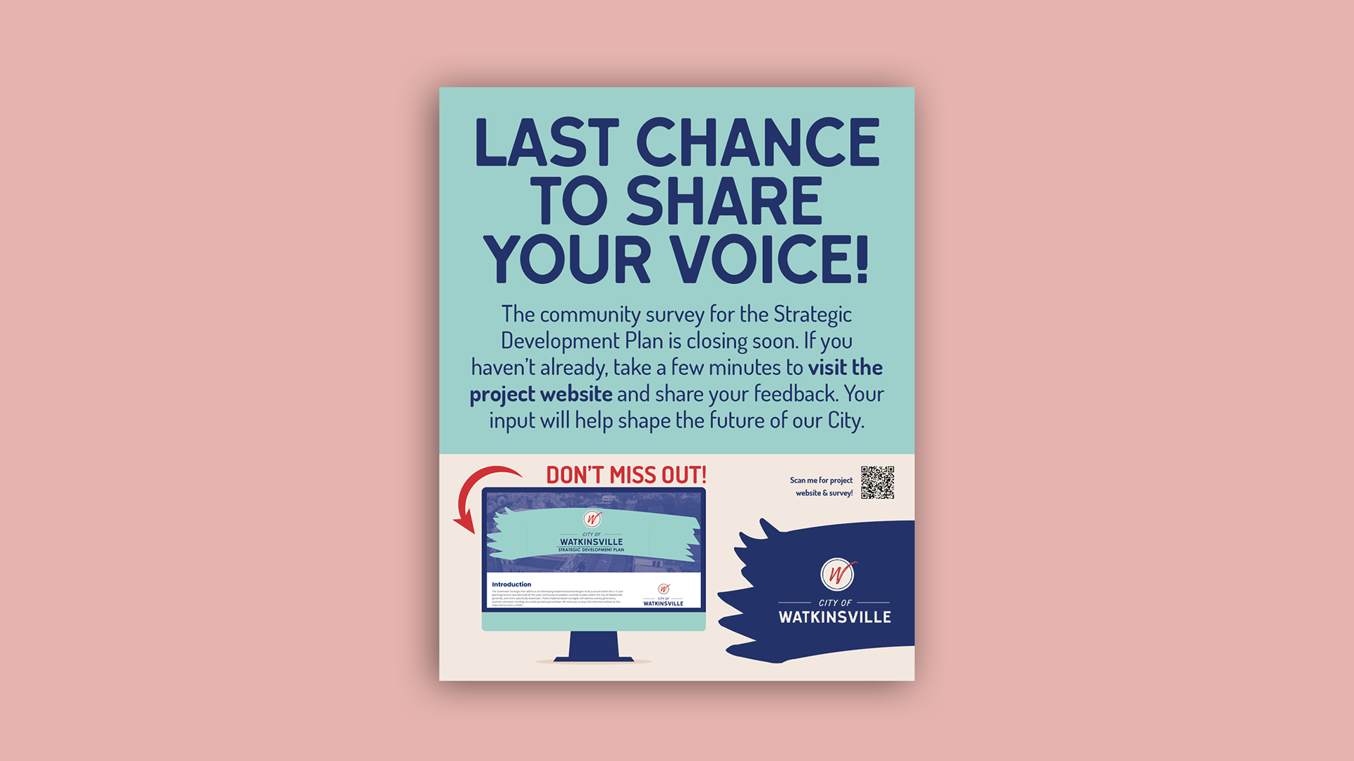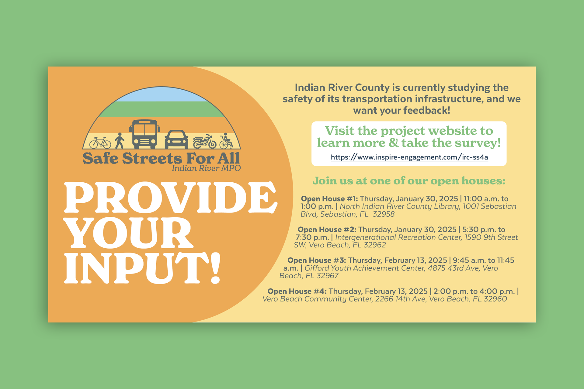 I created various materials for Inspire Placemaking Collective's marketing efforts including social media posts, graphics for proposals, and printed materials. Additionally, I designed social media posts and marketing assets for many different project efforts including Watkinsville & Indian River SS4A. Projects by Inspire Placemaking Collective.