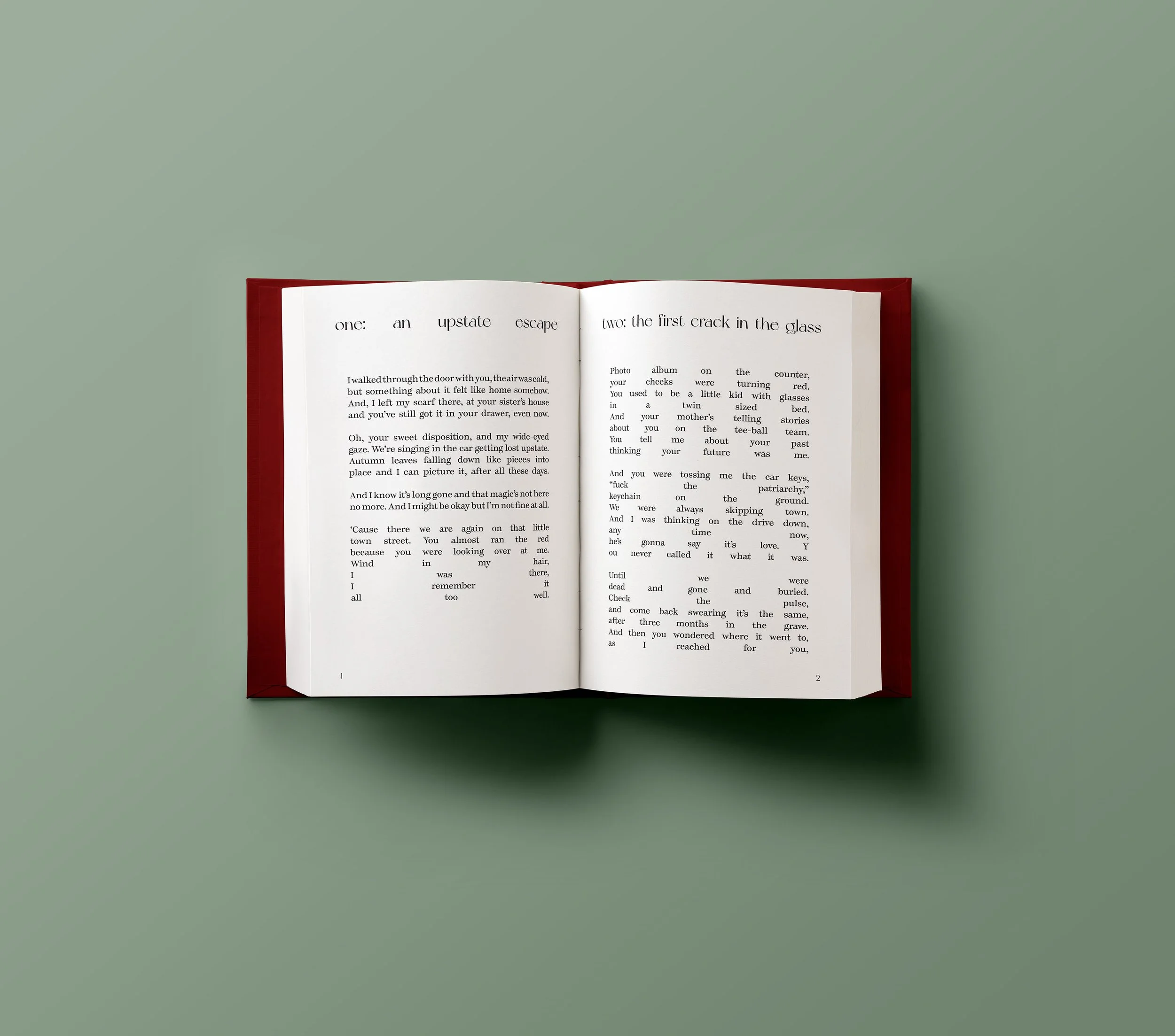 For this project we were tasked to design a book dust jacket and layout for a song that tells a story. I chose to do All Too Well (10 Minute Version) (Taylor's Version) by Taylor Swift.