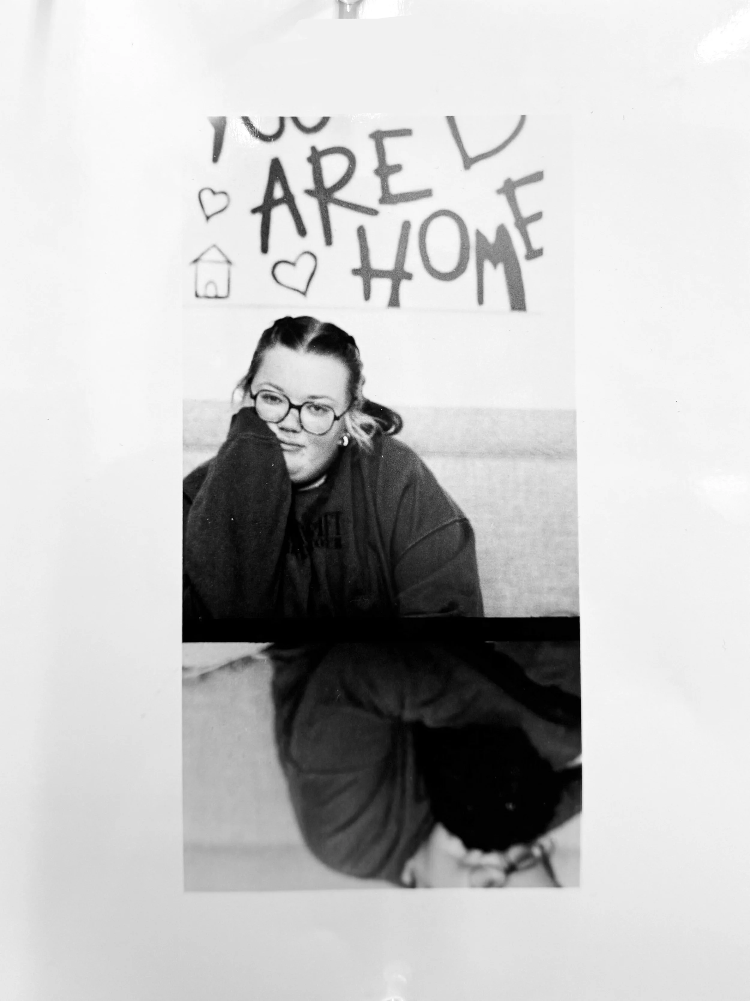 This image was shot for our Self Portraits assignment. It is actually two images next to each other on the film that we realized looked as though they mirrored one another. I created a negative terminal for the film out of cardboard that allowed me to print both slides at once. My professor and I agreed we found these two images compelling together and it was really fun to experiment with.